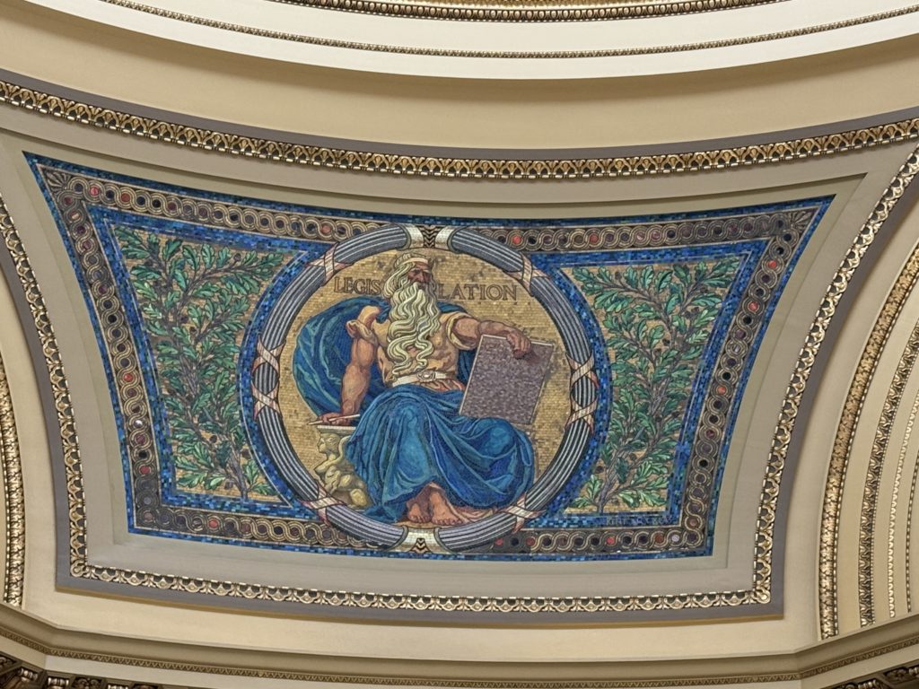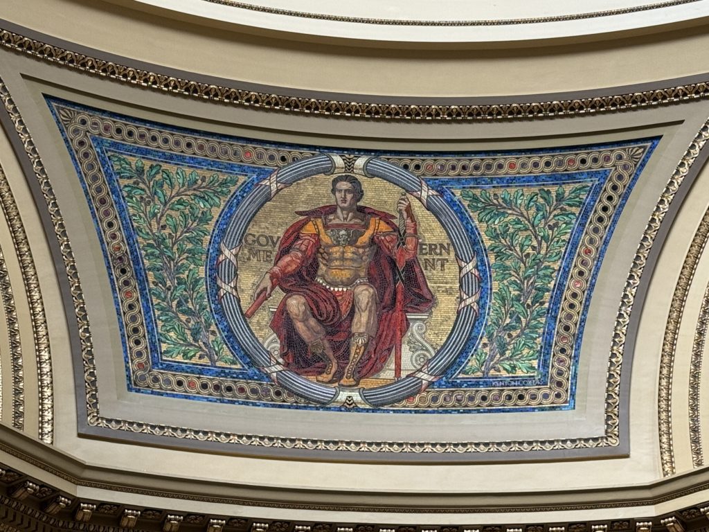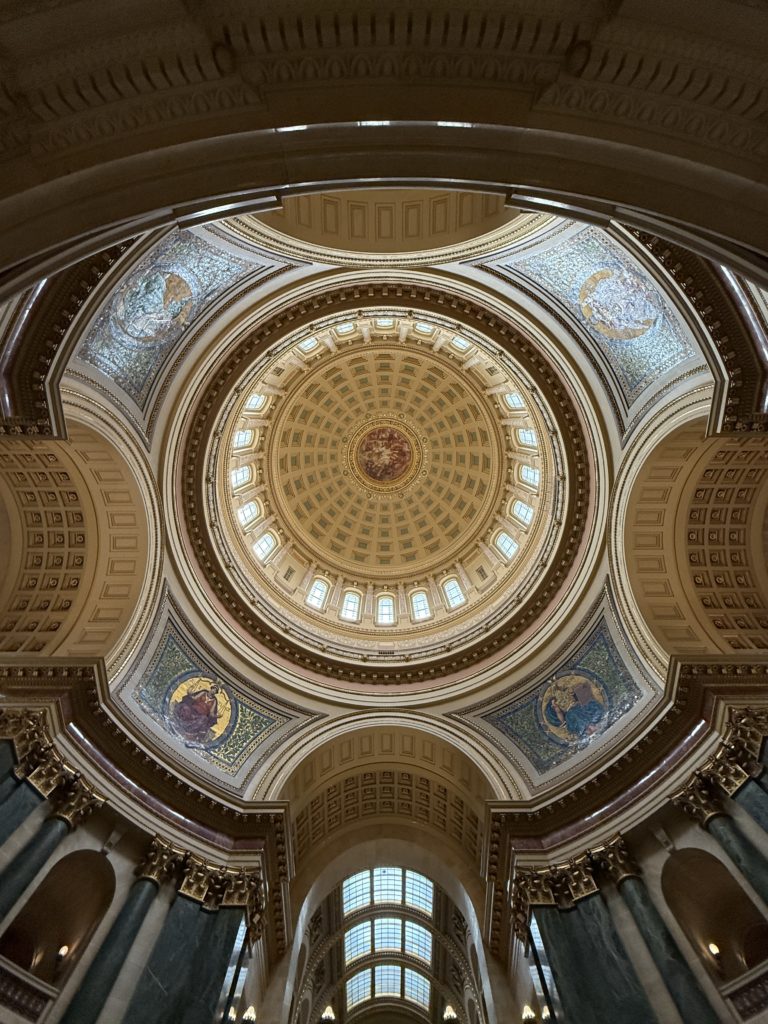 While we were in Wisconsin, we decided to take a short side trip to Madison, their state capital. The town of Madison is unique in that it is on an isthmus between two lakes, Lake Mendota and Lake Monona. It is also home to the University of Wisconsin. We spent our time there touring their capitol building. The capitol building that exists today was built from 1906 until 1917 and cost 7.25 million dollars. It is Wisconsin’s third capitol building in Madison. The first one was torn down in 1863. The second was gutted by fire in 1904. Well, this one may have cost a lot to build but it is a real showpiece. Here are some of the photos I took there.